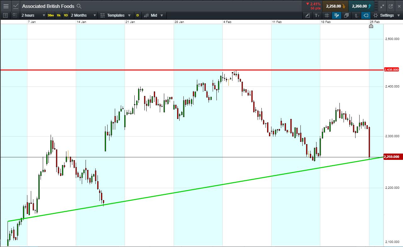 Will AB Foods (Primark) break support, or will it rise again to 2435p?