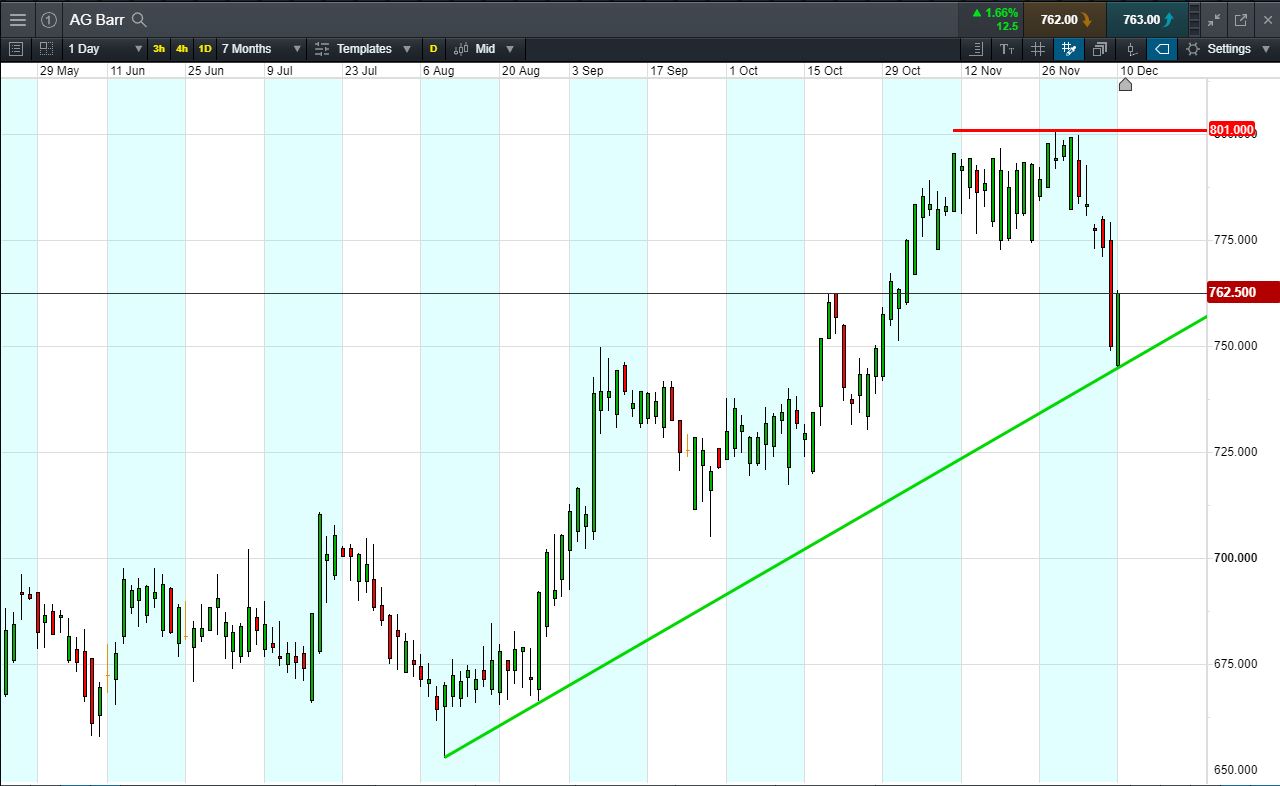 Will AG Barr break support, or will it rise again back to 801p recent highs?