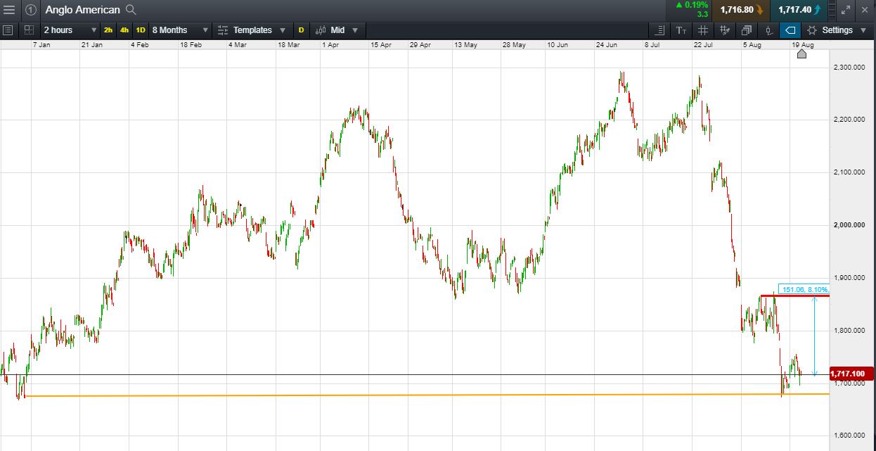 Will Anglo American break 8 month support, or will it rise again to 1870p? (+8.1%)