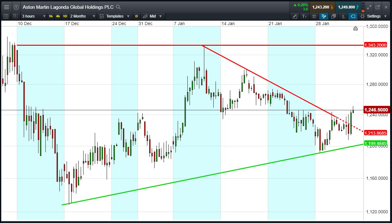 Will Aston Martin break support, or will it rise again back to 1343p ?