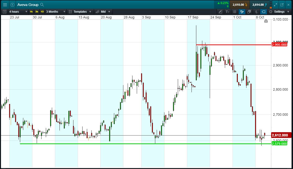 Let’s say you like the range, you think it’s heading back towards 2995p again. You decide to buy exposure to £10,000 worth of Aveva using a CFD, at the current price of 2612p. To do this, you need £2,000.