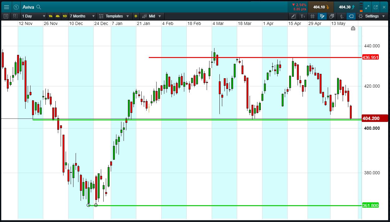 Let’s assume Aviva rises back to 436p Feb-Apr highs (+7.9%). Your profit would be £790, from your initial investment of £2,000.