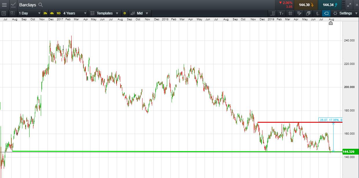 Will Barclays break 3 year support, or will it rise back to 170p (+17.3%)?