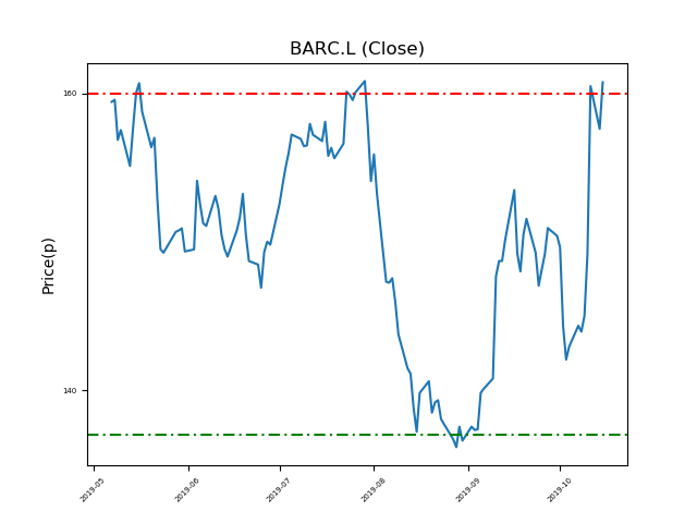Will Barclays PLC (BARC.L) break upwards, or will selling pressure push it back to the 137p support again? (-14%)?