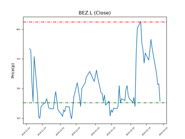 Beazley (BEZ.L): will it break the 538p key support level, or bounce to highs of 606p (+11%)?