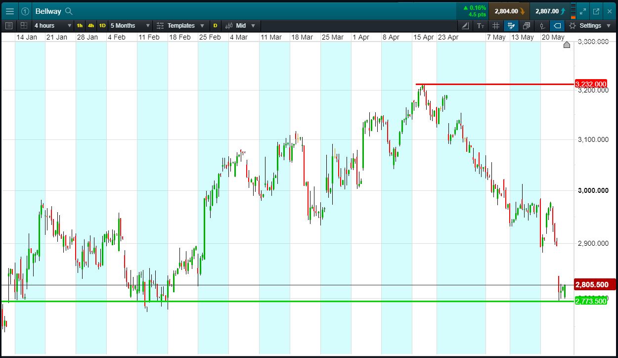 Will Bellway break support, or will it rise again back to 3232p highs?