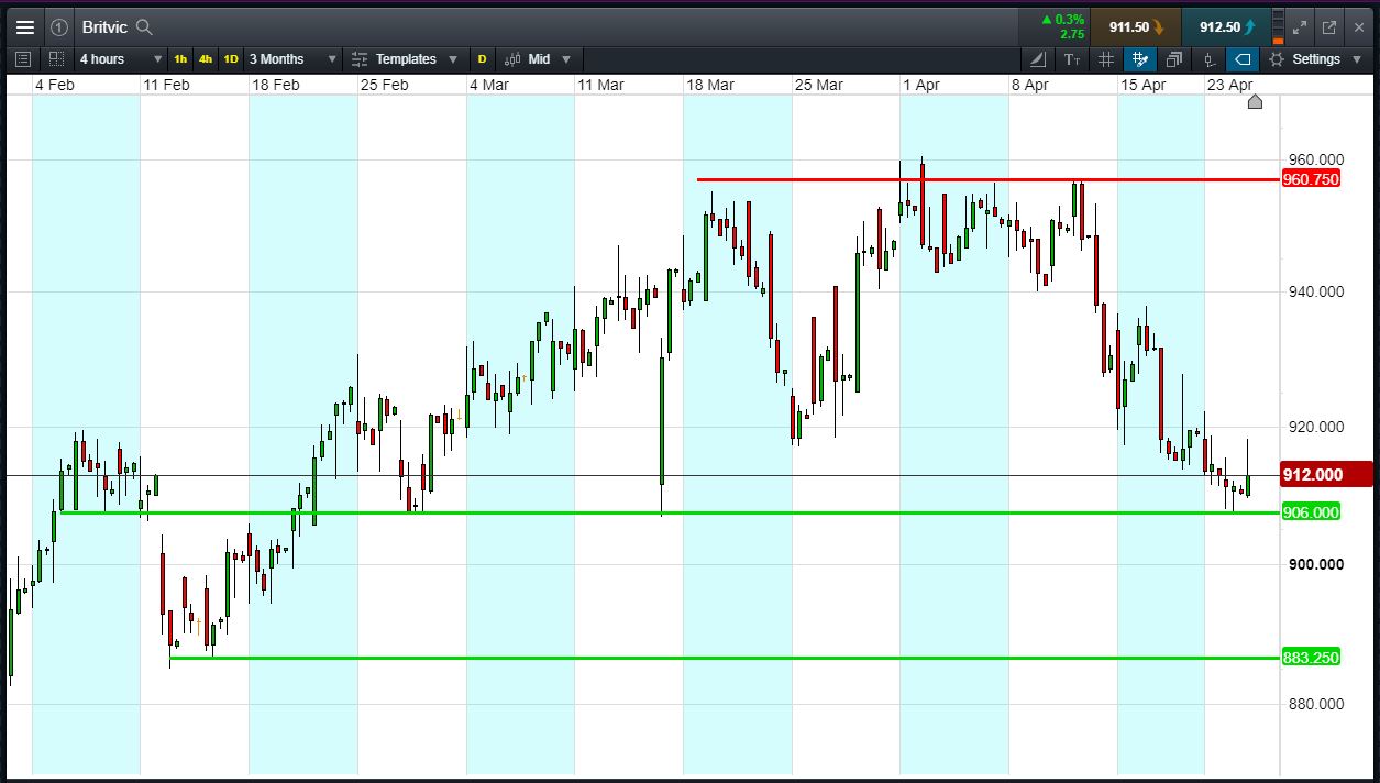Will Britvic break support, or will it rise again back to 961p ?