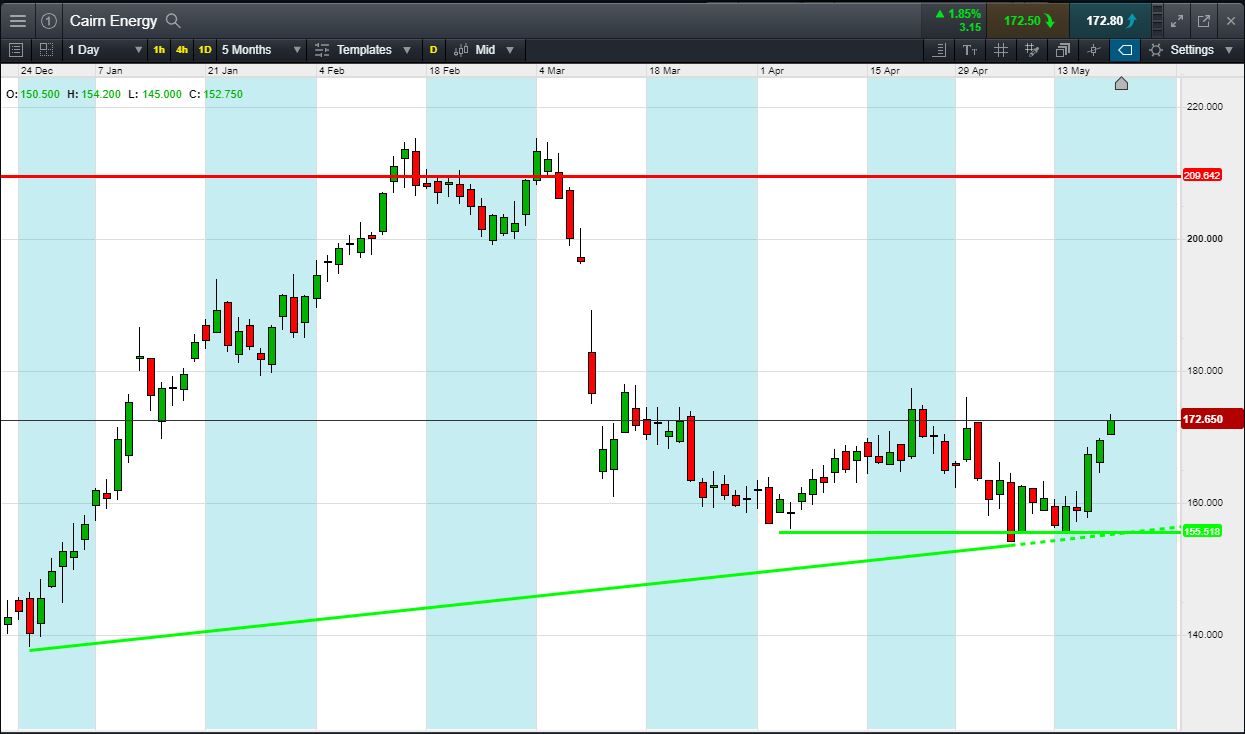 Will Cairn Energy break support, or will it rise March 213p highs?