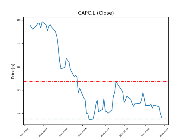 Will Capital & Counties Properties PLC (CAPC.L) break below the 144p support, or bounce to highs at 184p (+27%)?