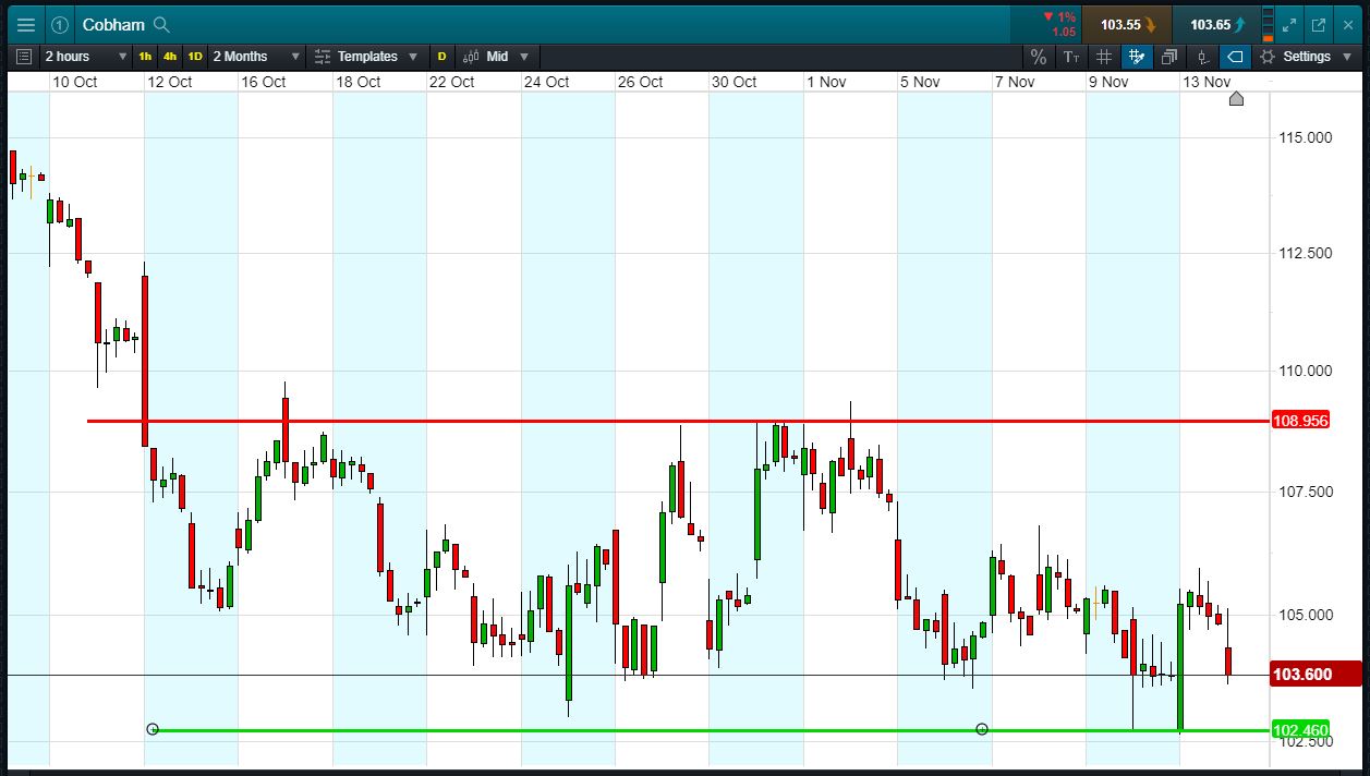 Will Cobham break support, or will it rise again back to recent 109p highs?