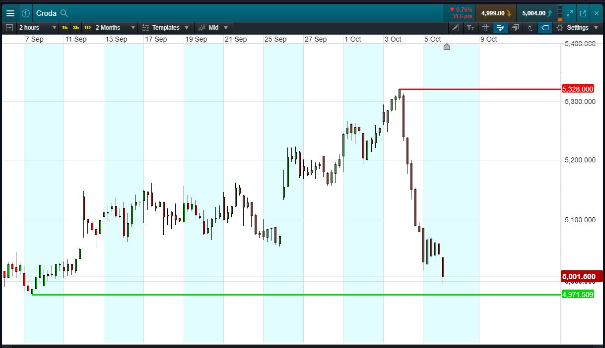 - Croda has a support zone around 5000p.