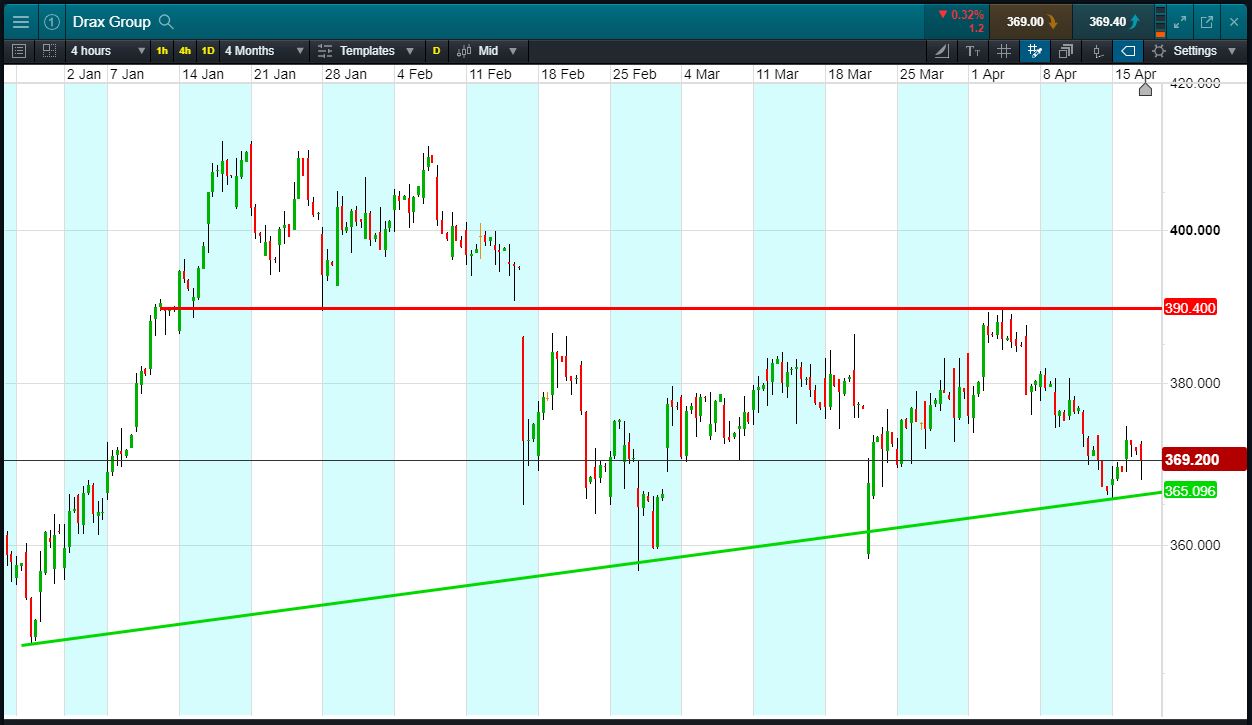 Will Drax break support, or will it rise again to 390p April highs?