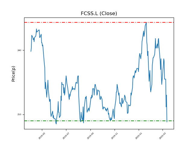 - Currently close to the 207p support at 209p (at time of writing).
