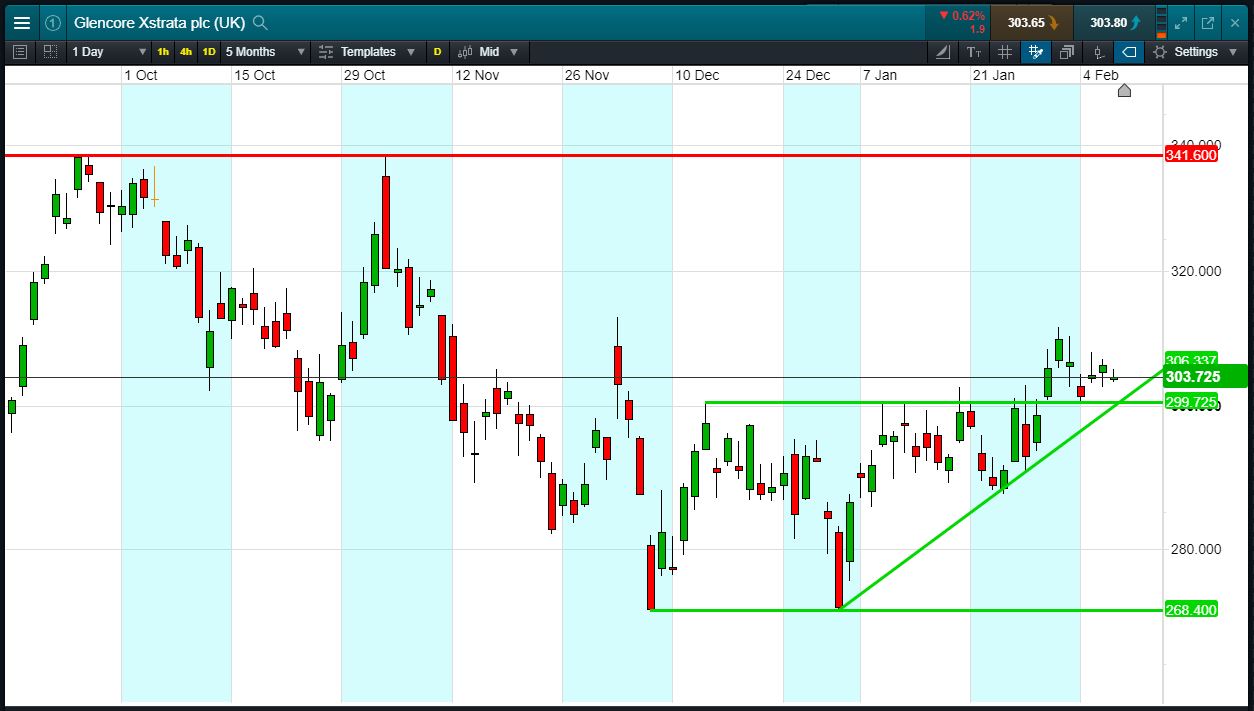 Will Glencore break support, or will it rise again to 341p?