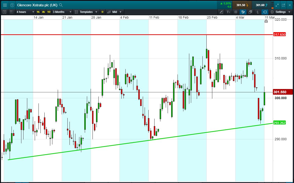 Will Glencore break support, or will it rise again to 317p?