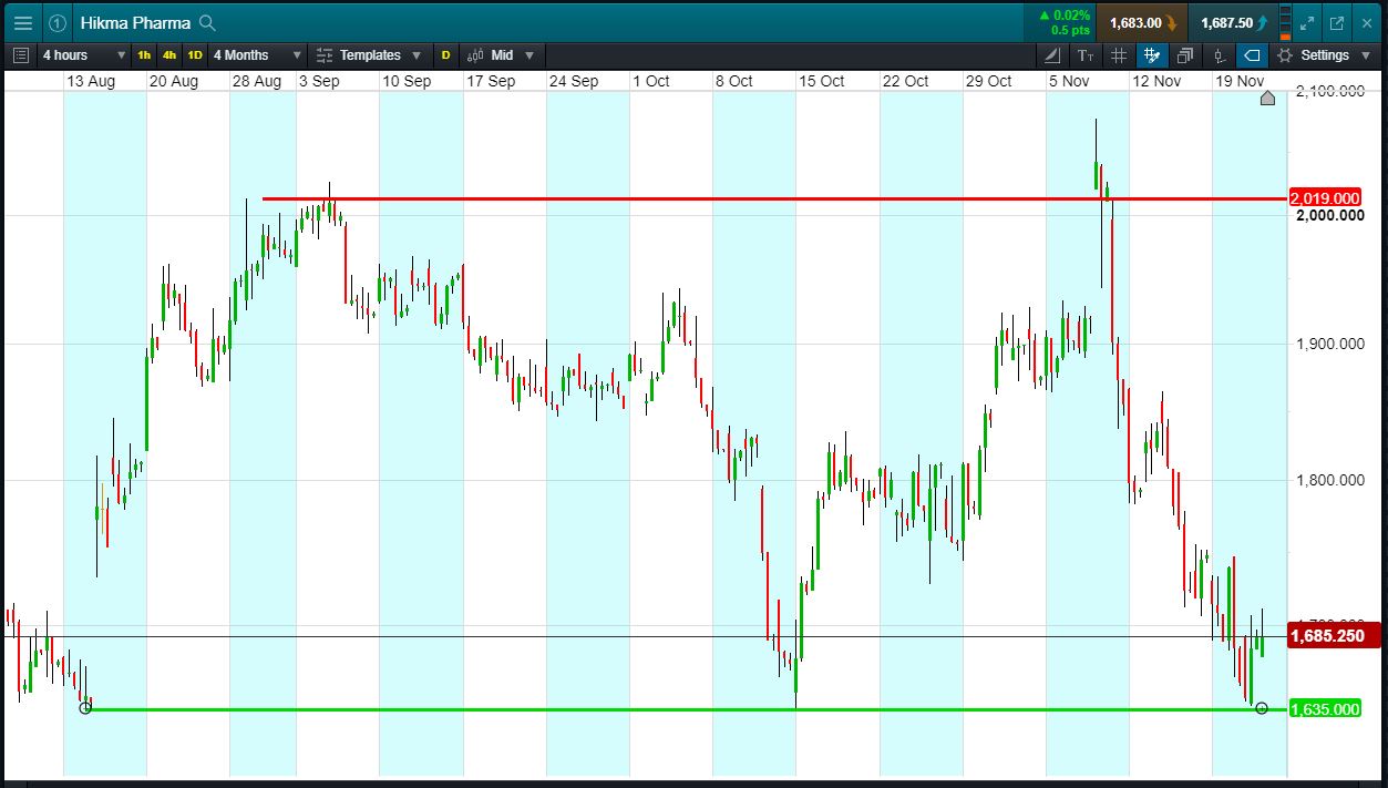 - Hikma has support since mid-August, 3 bounces off support zone, most recently this week.