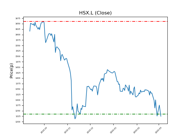 Will the Hiscox Ltd (HSX.L) share price break beneath the 1235p support zone, or will we see a return to highs of 1660p (+34%)?