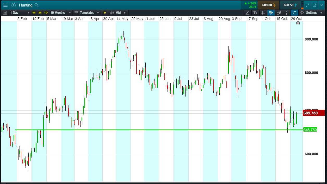- Hunting has a support level since March, with the latest bounce off 648p this week.