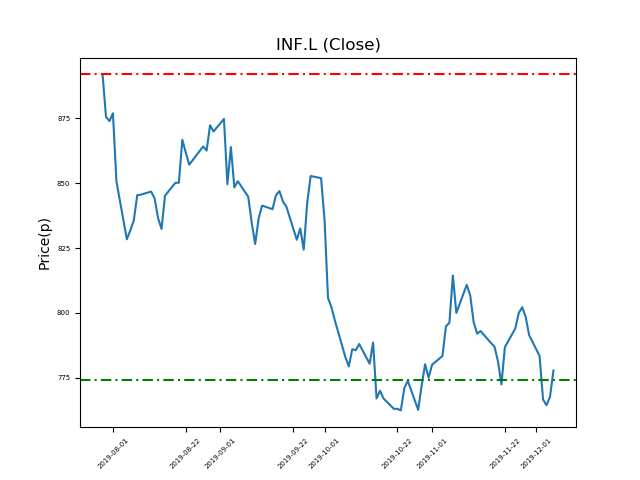 Will Informa (INF.L) break below the 774p support, or bounce to highs at 892p (+14%)?