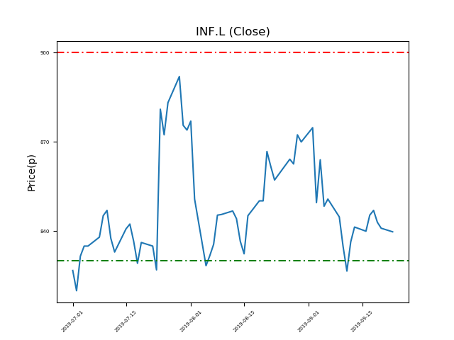 Will Informa PLC (INF.L) break or bounce again from the 830p support zone, back to year highs at 900p? (+7.6%)