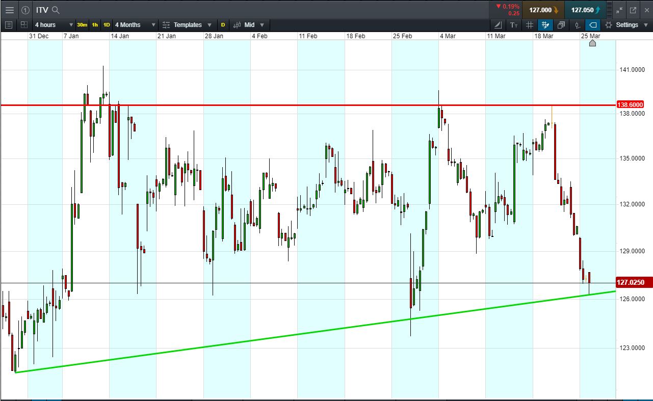Will ITV break support, or will it rise again to 138p last week’s highs?