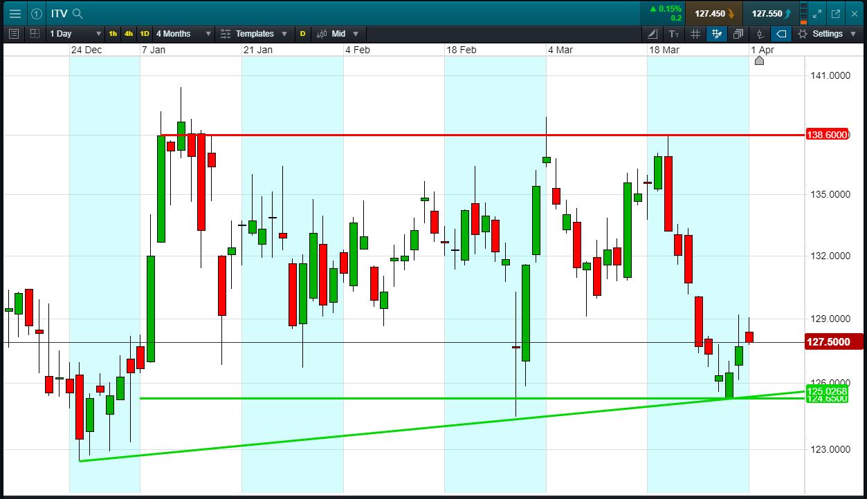 Will ITV break support, or will it rise again to recent 138p highs?