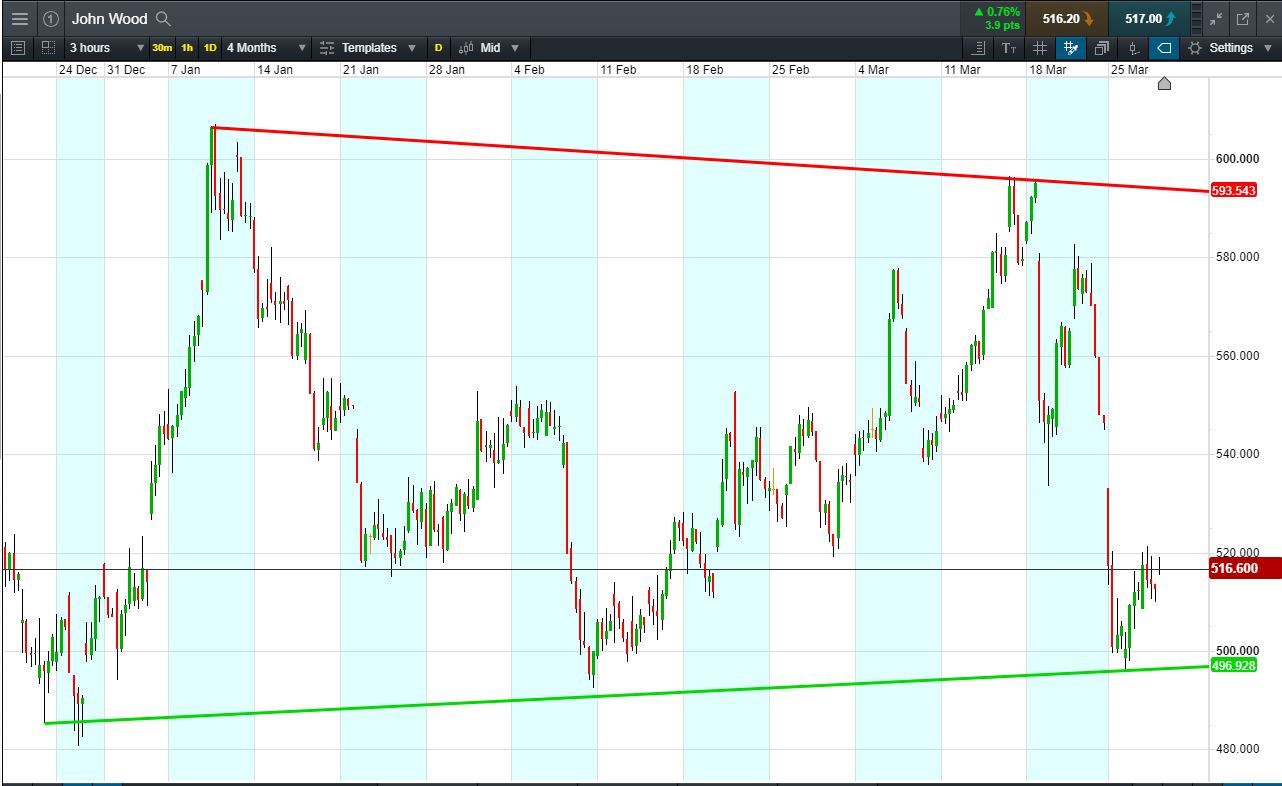• Will the pattern repeat itself, rising back to recent highs of 595p?