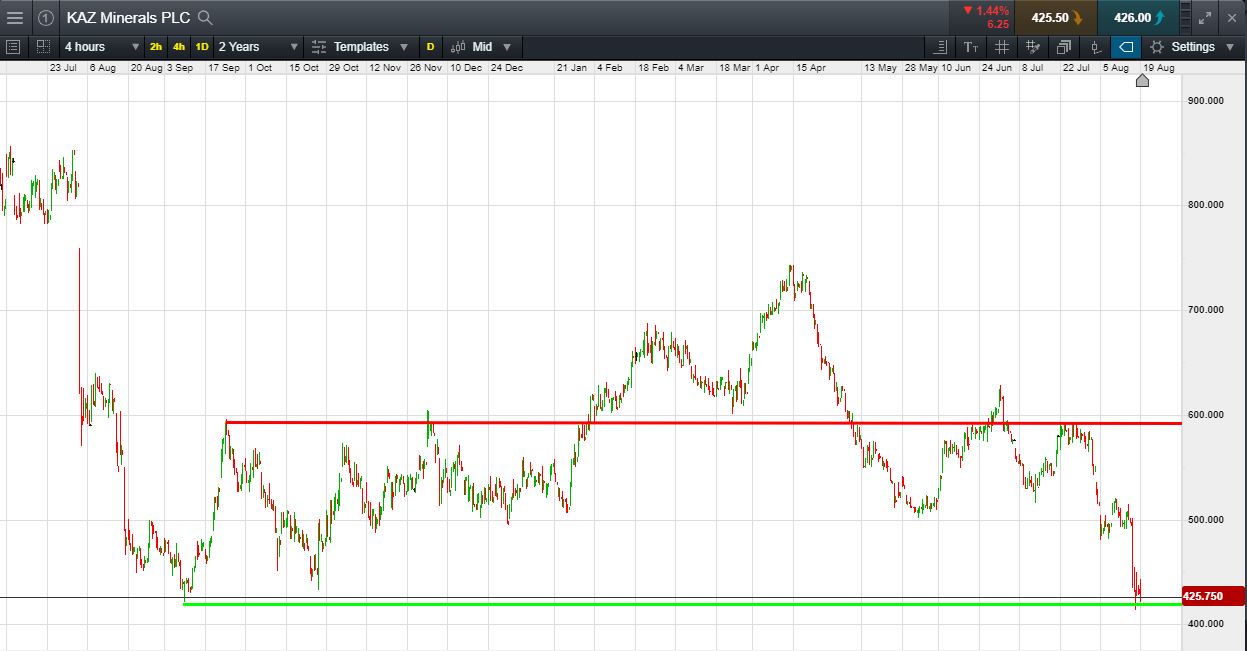 Will KAZ Minerals break 11 month support, or will it rise again back to 590p? (+28%)