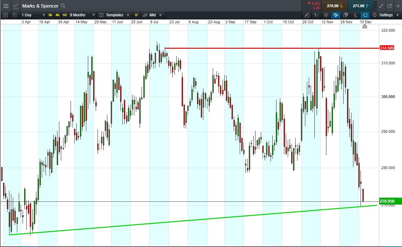 Will Marks & Spencer break support, or will it rise again back to 314.5p ?