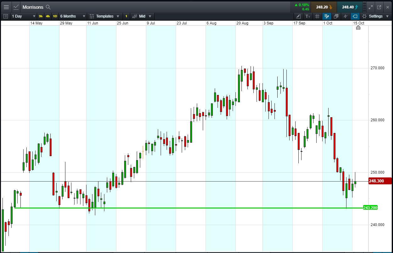 Will Morrisons break support, or will it rise again back to 270p August highs?