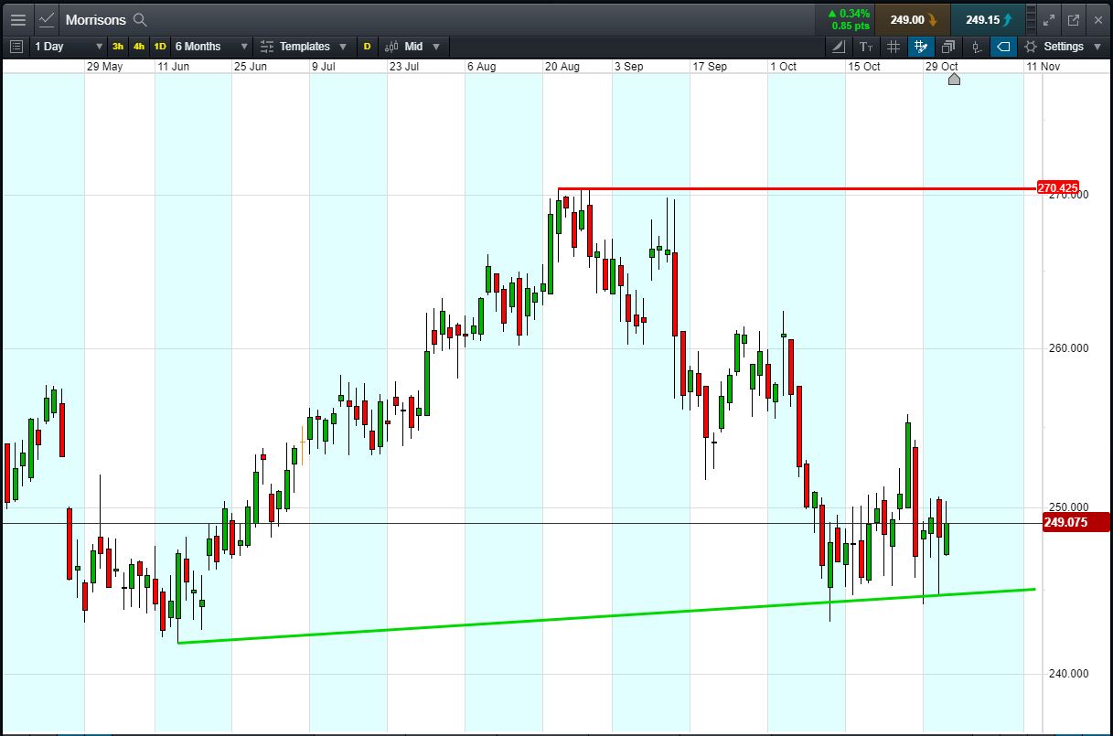 Will Morrisons break support, or will it rise again back to 270p highs?
