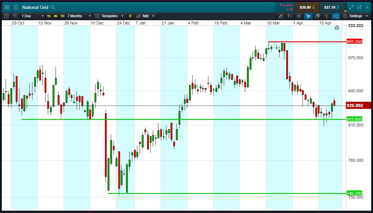 - National Grid has bounced off support at 813p.