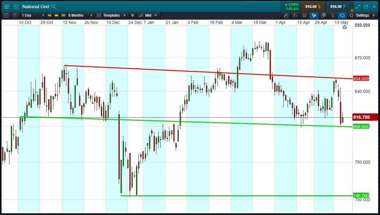 Will National Grid  break support, or will it rise again back to highs of 854p?