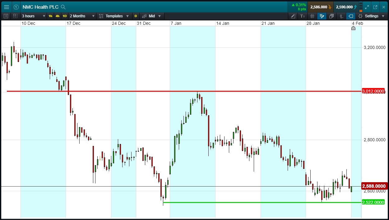 Will NMC Health break support, or will it rise again back to 3012p recent highs?