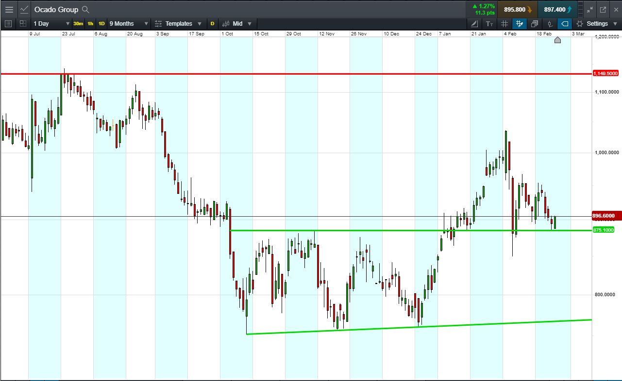 Will Ocado break support, or will it rise again to 1149p?