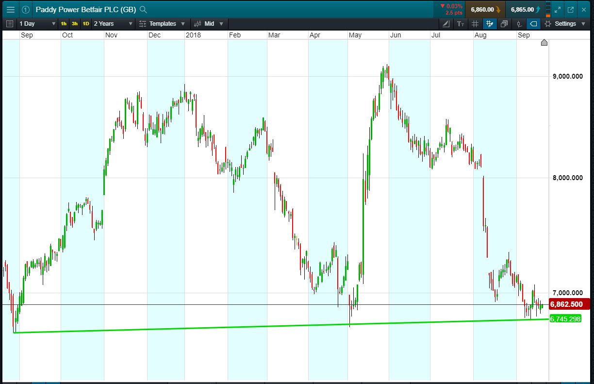 Will Paddy Power Betfair break support, or will it rise again back to 9000p ?