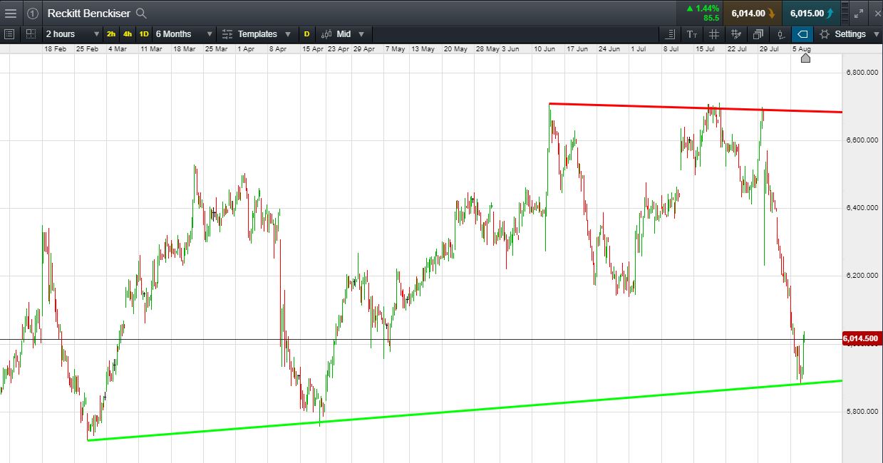 - Reckitt Benckiser testing 7 month rising support dating back to Feb 19
