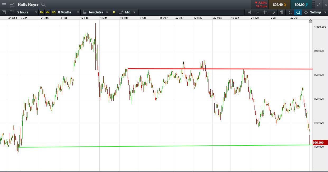 Will Rolls Royce break 2019 support, or will it rise again to 930p? (+13.2%)