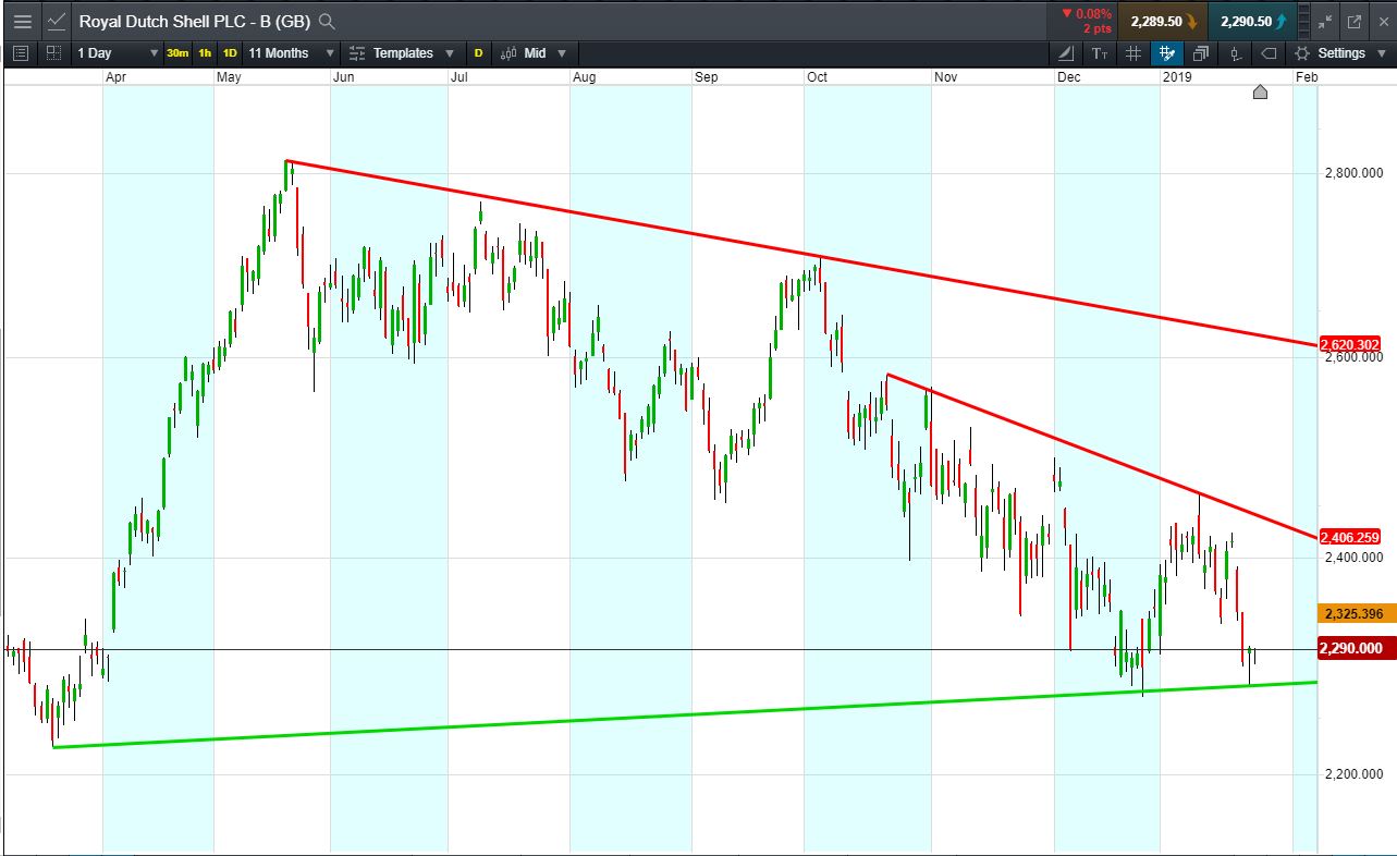 Will Royal Dutch Shell break support, or will it rise again to 2454p?