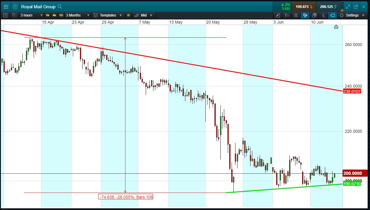 Will Royal Mail break support, or will it rise again to 238p (+19%)
