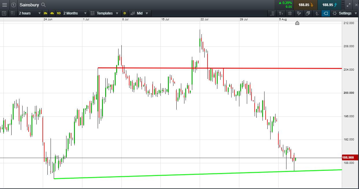 Will Sainsbury break shallow rising support, or will it rise again to 204p? (+7.76%)