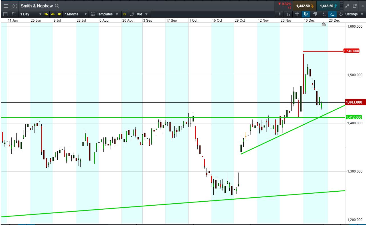 Will Smith & Nephew break support, or will it rise again back to 1549p highs?