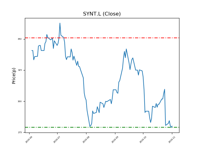 Will Synthomer (SYNT.L) shares break below the 279p support zone, or will it return to highs of 351p (+25%)?