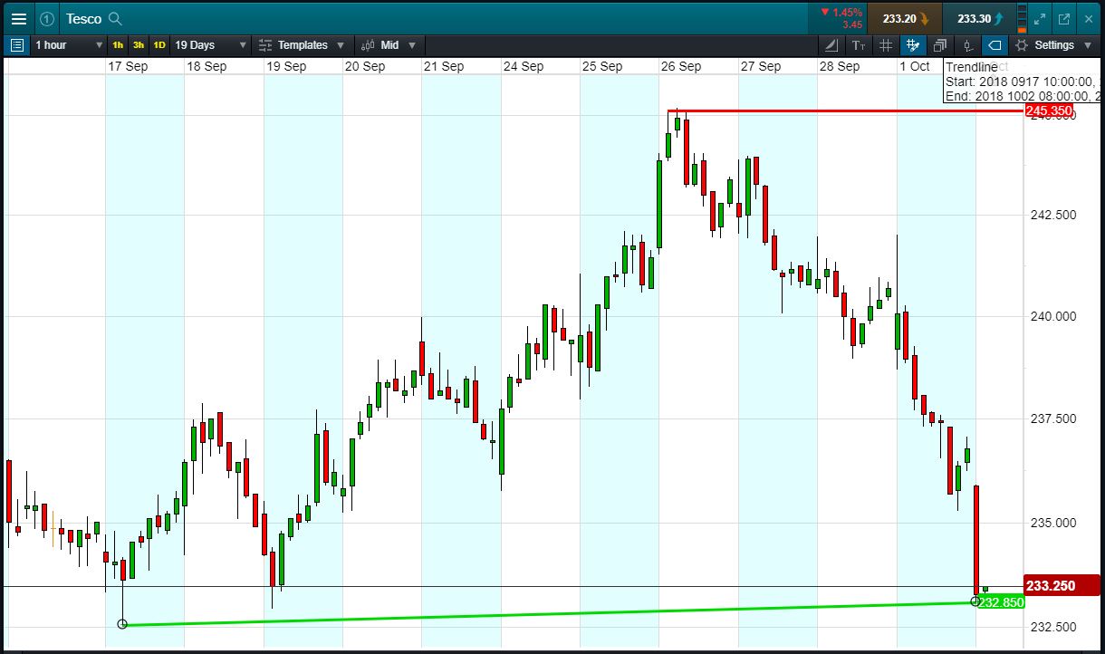 - Tesco has shallow rising support since mid-September