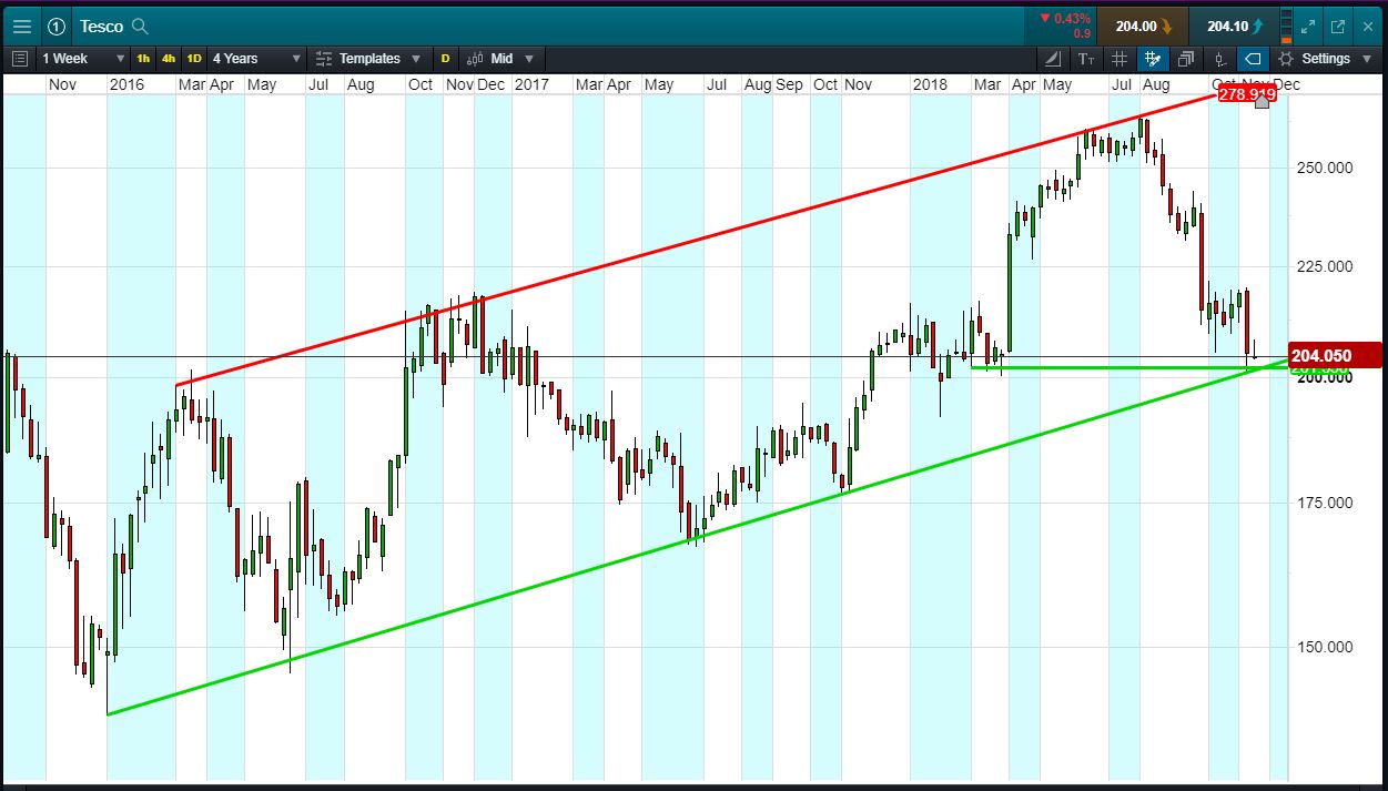 Will Tesco break support, or will it rise again back to highs of 266p?