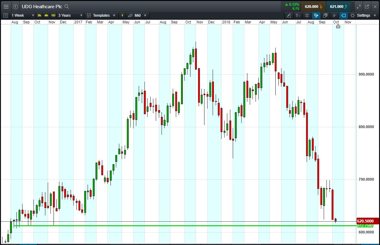 Will UDG Healthcare break support, or will it rise again back to 699p September highs?