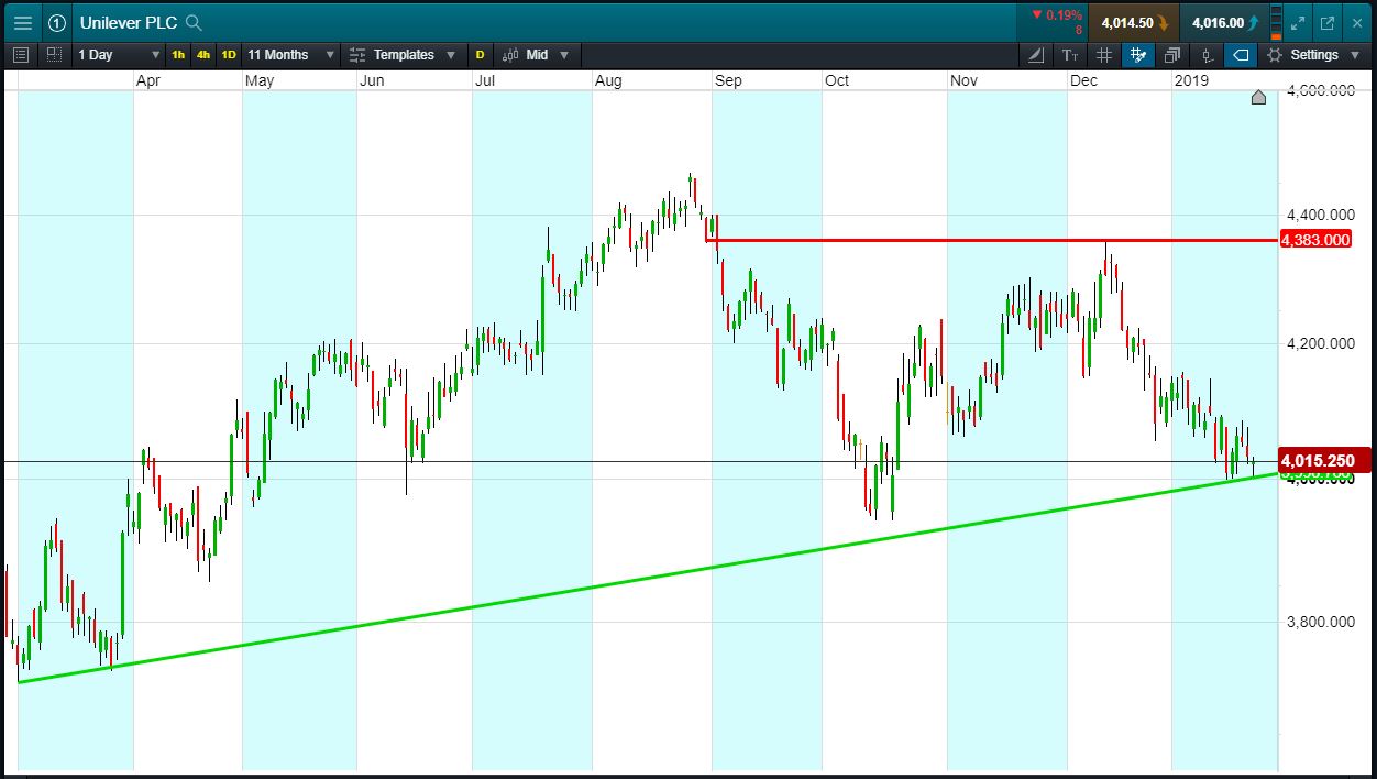 Will Unilever break support, or will it rise back to 4383p Dec highs?
