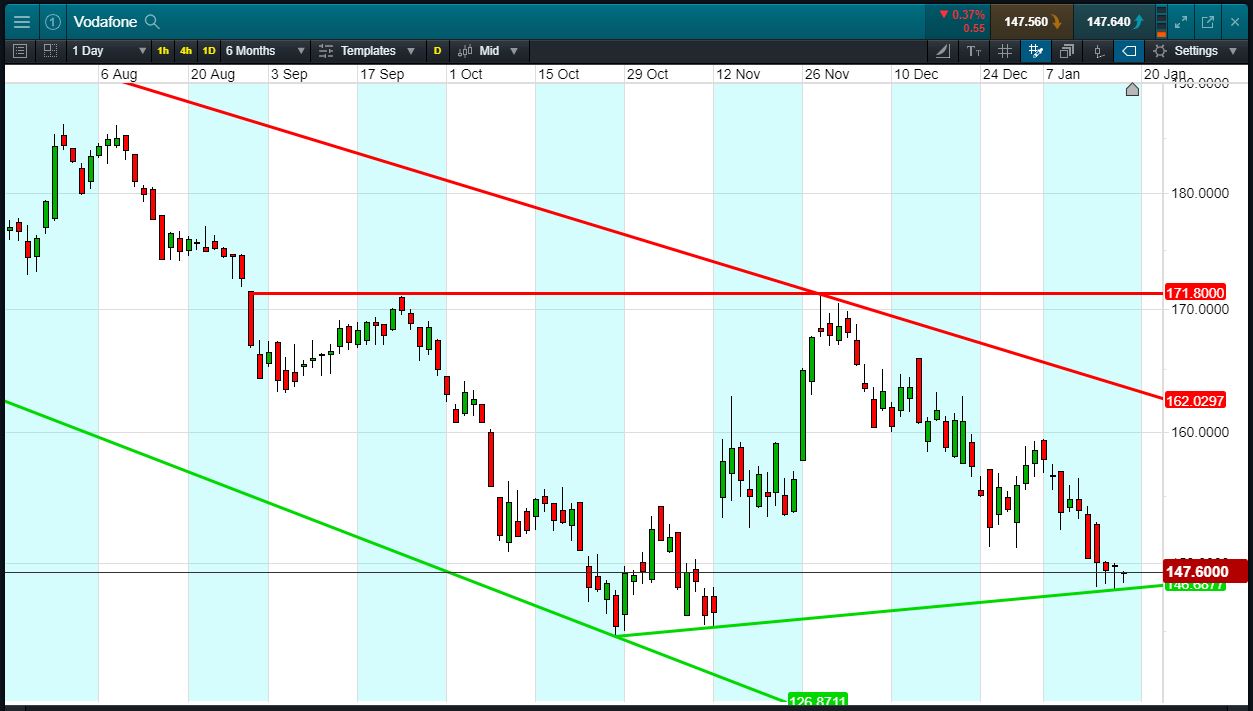 Let’s say you like the Vodafone chart and you think the price is heading back towards 162p again. You decide to buy exposure to £10,000 worth of Vodafone using a CFD, at the current price of 148p. To do this, you need £2,000.
