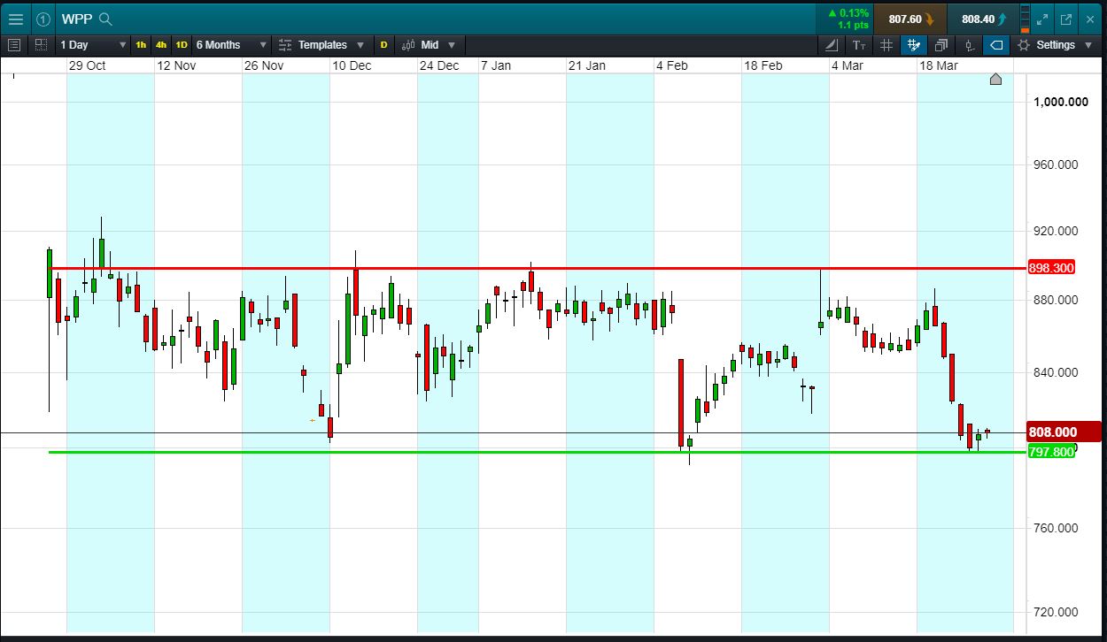 Will WPP break support, or will it rise again to 898p?