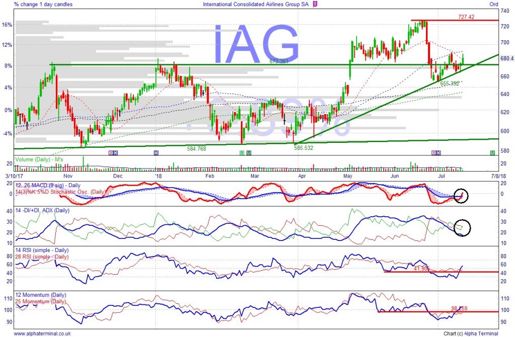 Share price breakout opens the door for another crack at June highs. Shares showing desire to extend March uptrend. Oil prices off their highs on increased-supply concerns helps airlines via cheaper fuel costs. Recent traffic data (June) was positive. Launched new subsidiary LEVEL based in Vienna